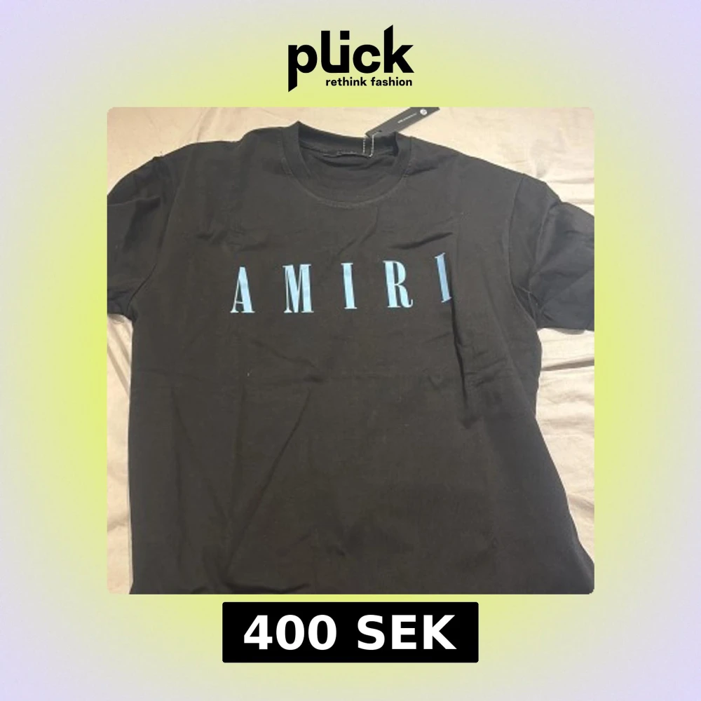 Snygg svart t-shirt från Amiri med stor blå logotyp på bröstet. Klassisk rund halsringning och korta ärmar. Tillverkad i 100% bomull för en skön och mjuk känsla. Perfekt för en stilren och trendig look.