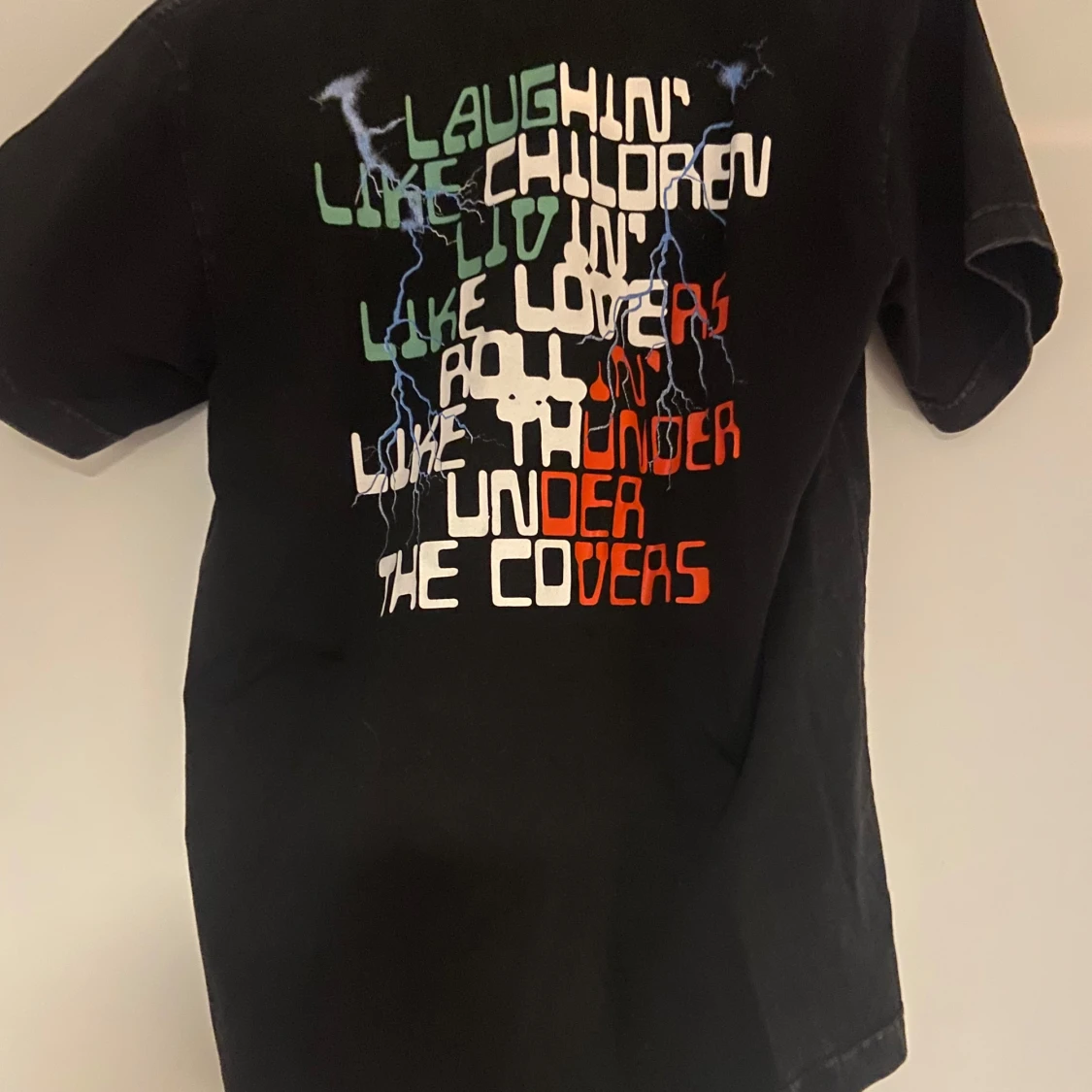 Cool svart t-shirt med unikt tryck på både fram- och baksidan. Mycket bra skick.