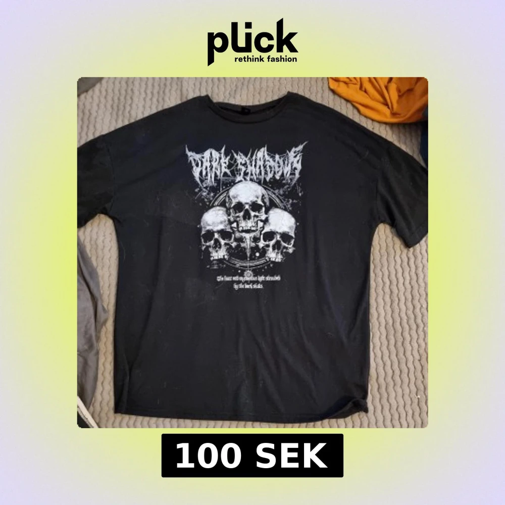 Cool svart t-shirt med stort tryck av tre dödskallar och text på bröstet. Oversized passform och rund halsringning. Perfekt för dig som gillar en edgy stil.