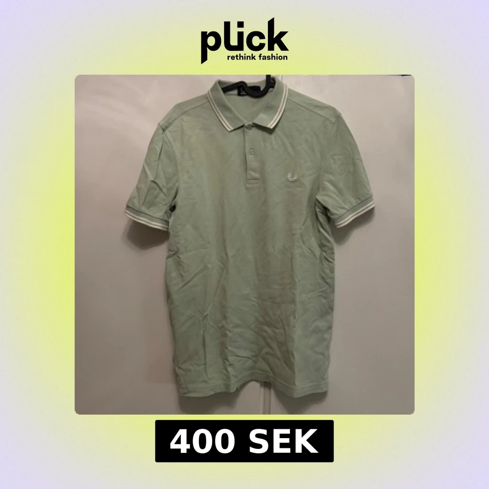 Snygg mintgrön piké från Fred Perry med klassisk krage och vita ränder på krage och ärmslut. Broderad logga på bröstet. Perfekt för dig som gillar stilren och sportig vibe.