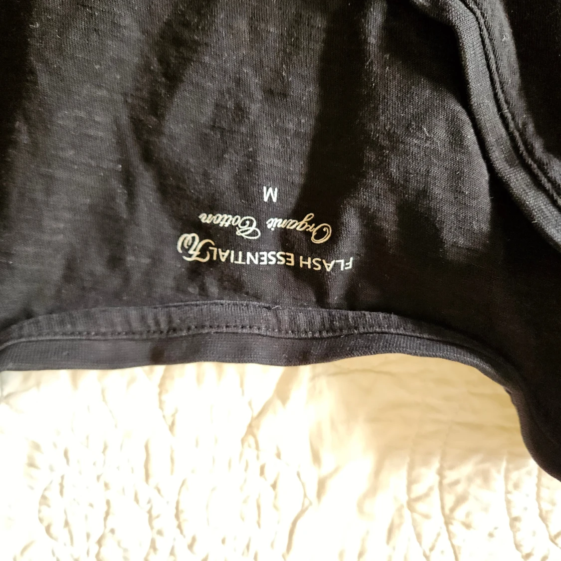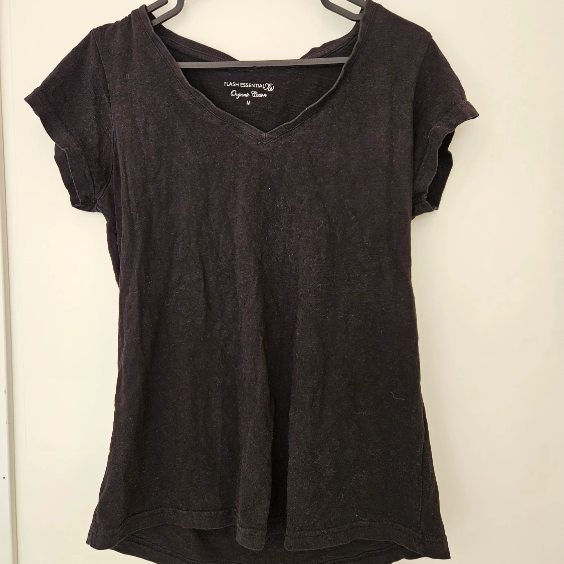 Svart t-shirt från Flash Essentials i ekologisk bomull. Modellen har v-ringning, korta ärmar och en klassisk passform. Storlek M