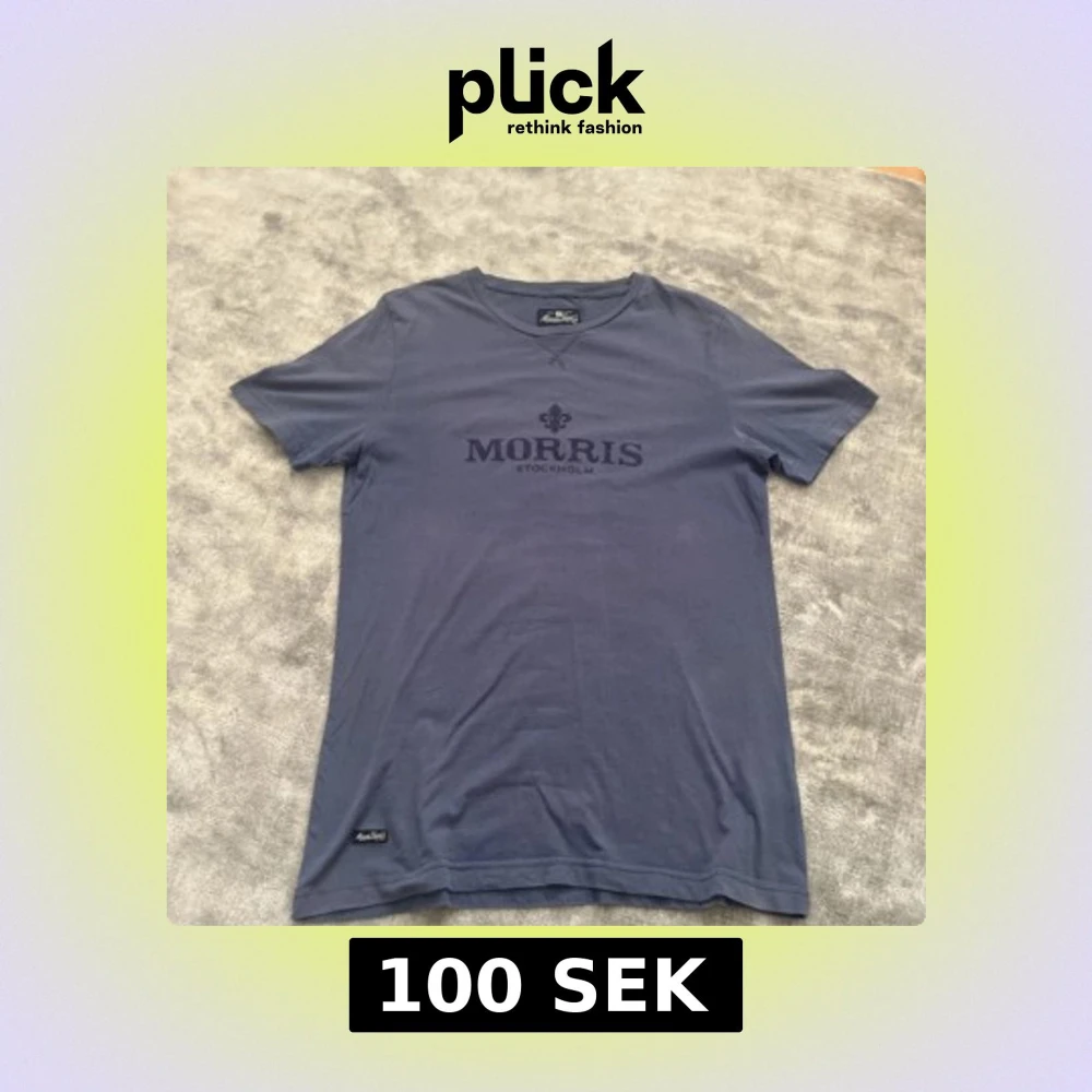 Snygg blå t-shirt från Morris Stockholm i storlek medium. Klassisk rund hals och korta ärmar, med tryckt logga framtill. Skön passform och mjukt material som känns chill att bära. Perfekt för dig som gillar stilrena plagg med diskret branding.