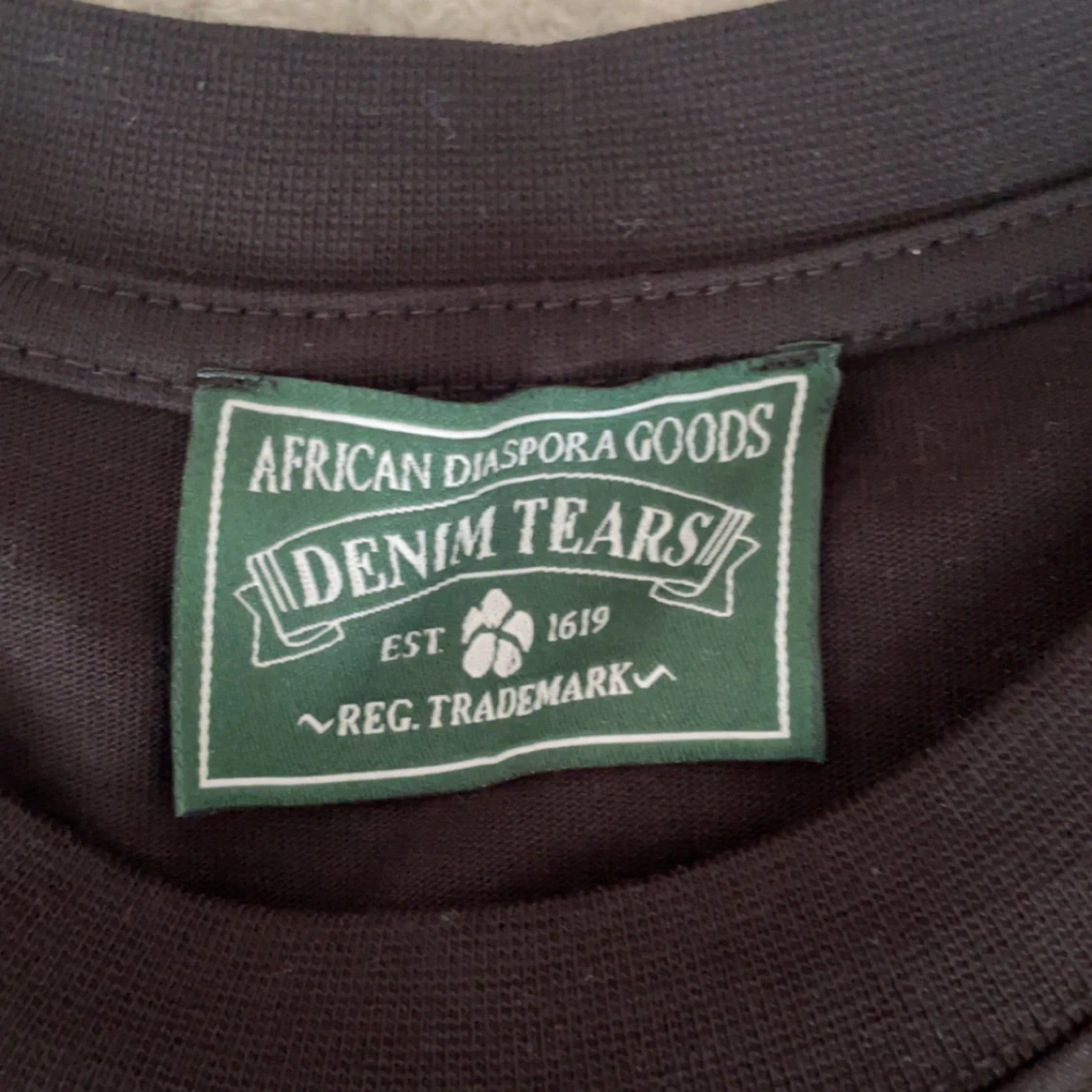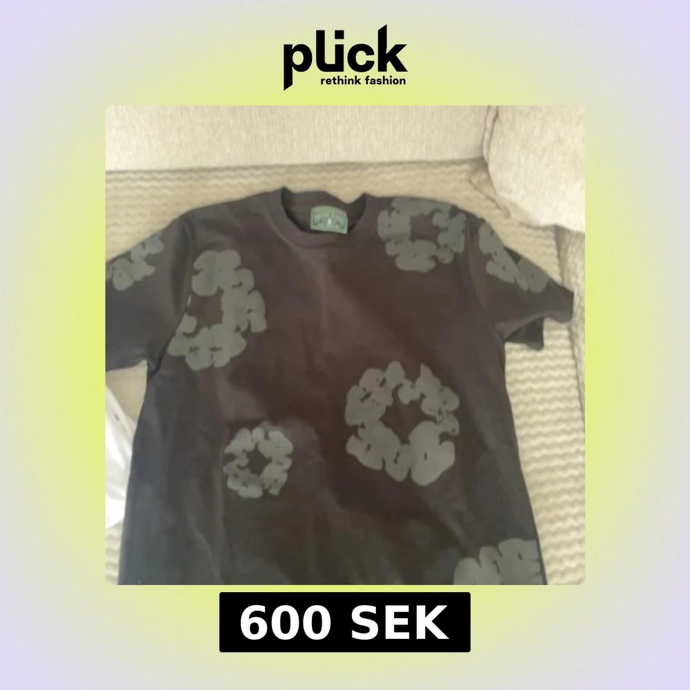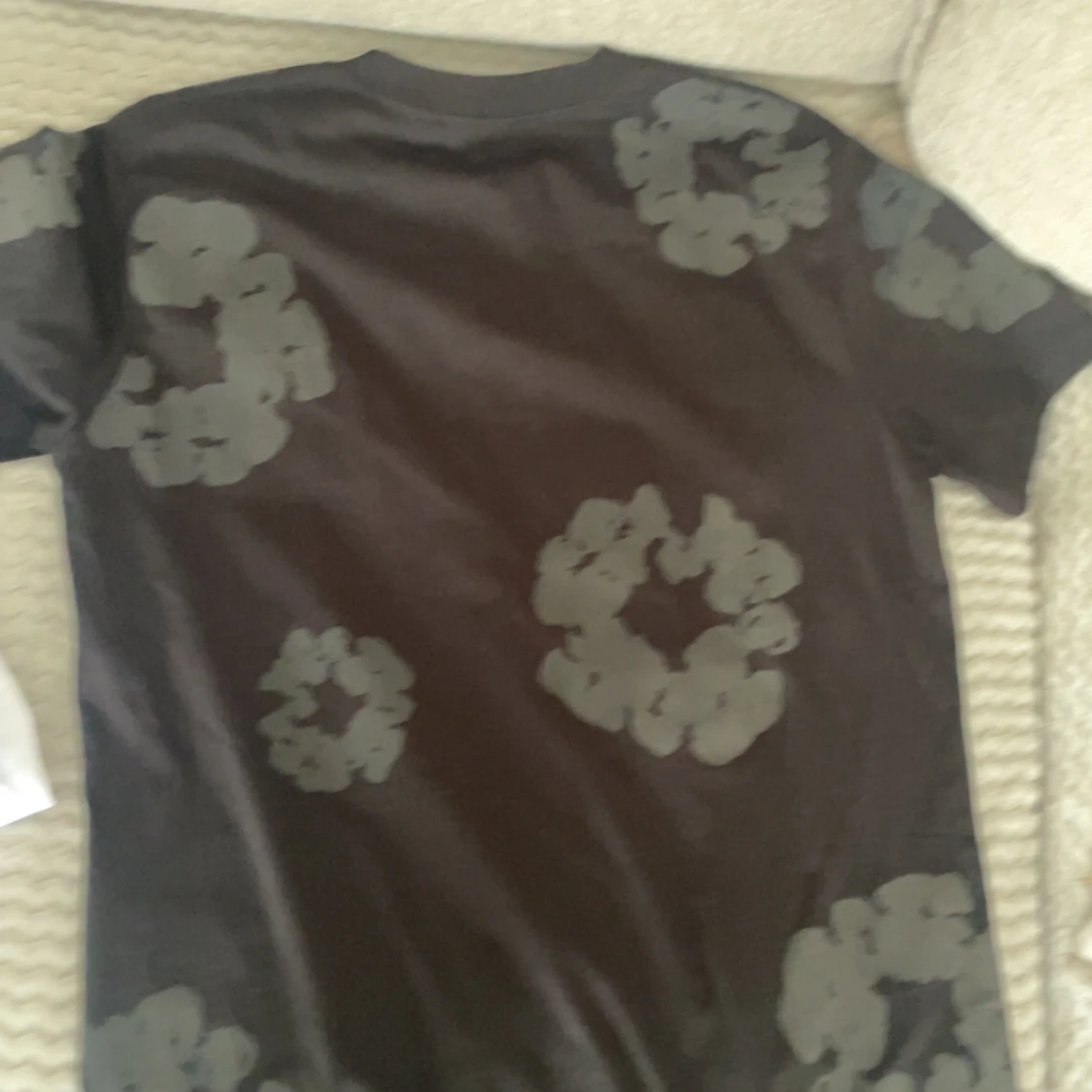 Cool svart t-shirt från Denim Tears med stora grå blommiga mönster över hela tröjan. Klassisk passform med rund hals och korta ärmar. Perfekt för dig som vill sticka ut med en unik och trendig stil.