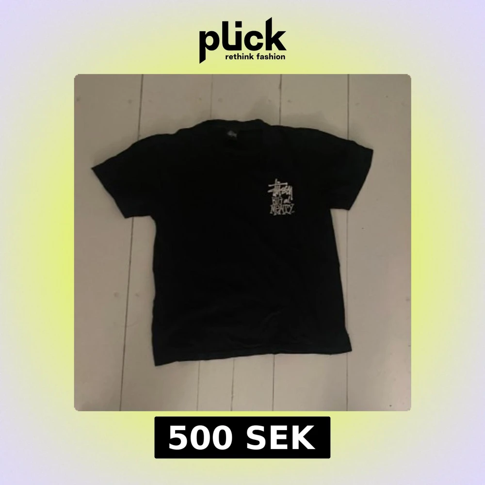 Svart t-shirt från Stüssy i bomull med coolt tryck fram och bak. På bröstet står det 'Stüssy Big and Meaty' i vitt och på ryggen finns en stor dinosaurie i grå toner. Klassisk passform och korta ärmar, perfekt för dig som gillar streetwear.