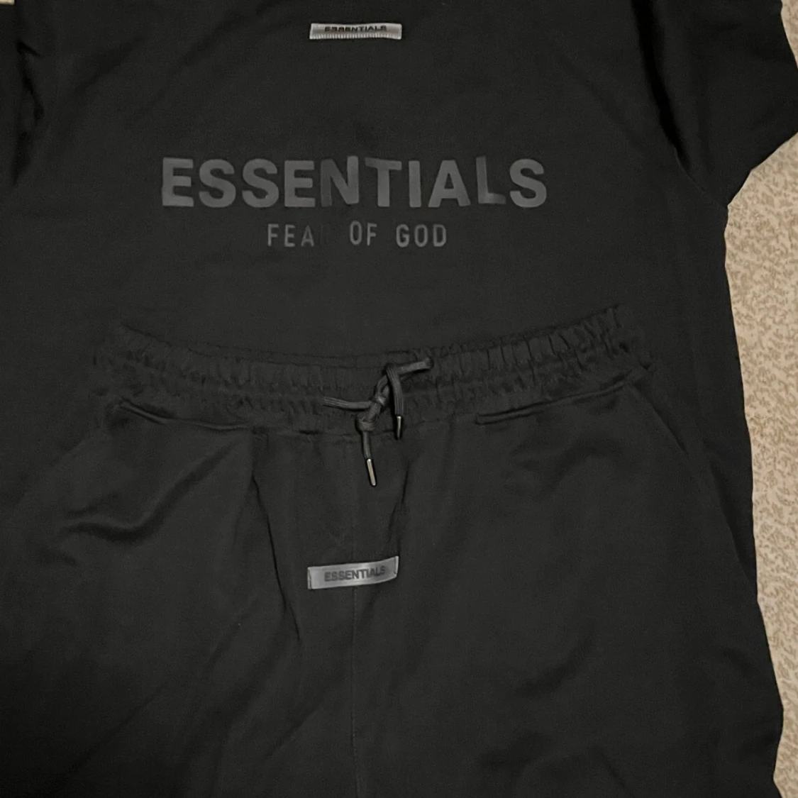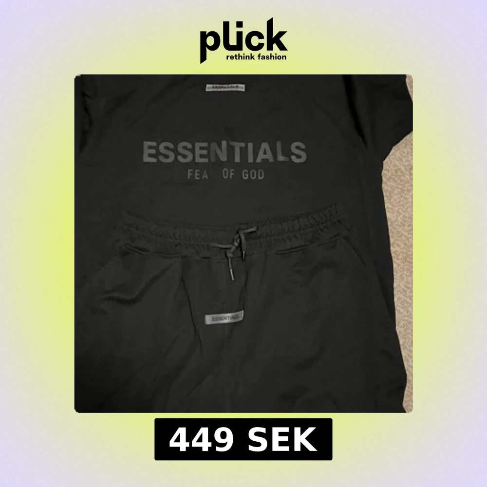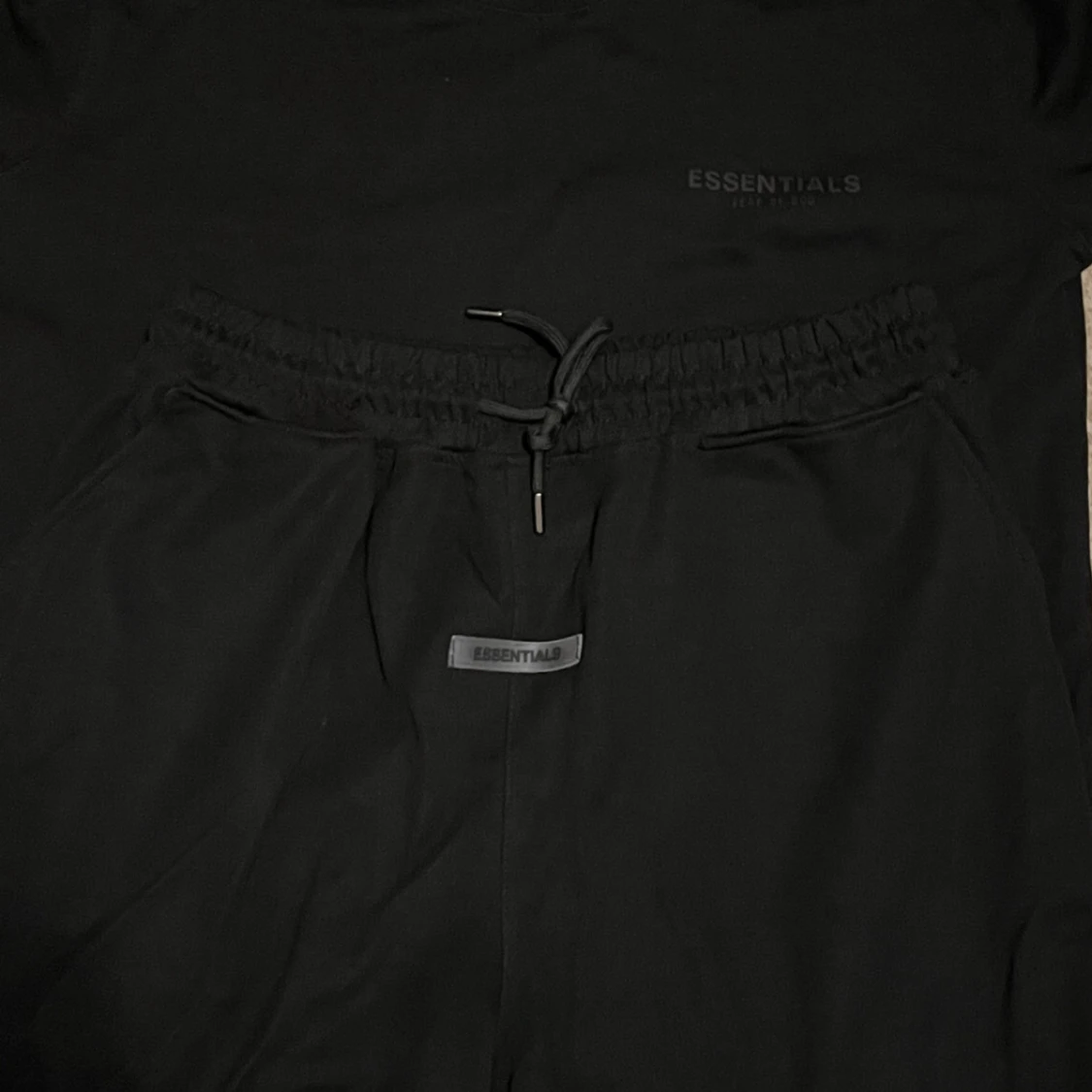 Svart set från Essentials Fear of God med elastisk midja och snörning. Setet har en clean look med diskret logga framtill och är tillverkade i mjukt material för maximal komfort. Perfekta för en chill och stilren streetwear-outfit.