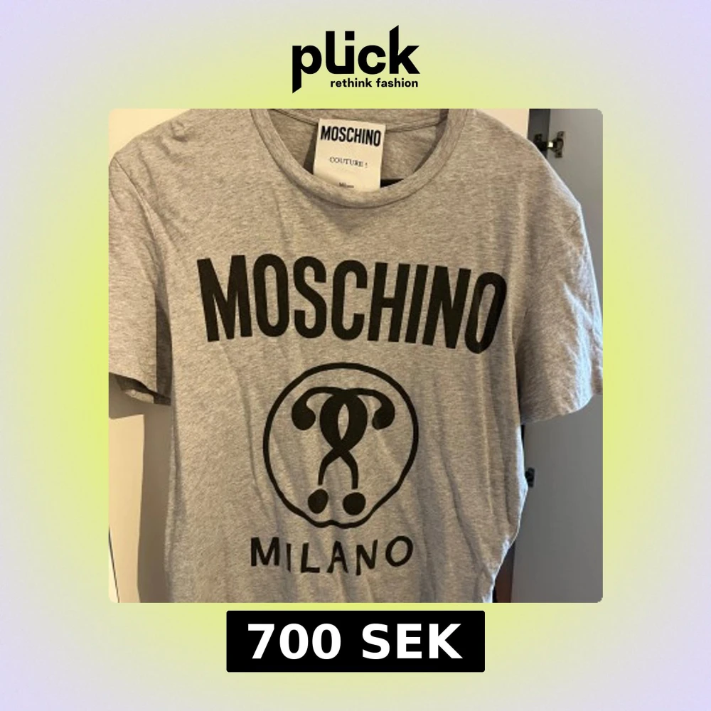 Snygg grå t-shirt från Moschino med stor svart logga och Milano-tryck framtill. Klassisk rund halsringning och korta ärmar. Perfekt för dig som gillar streetstyle och vill sticka ut med ett ikoniskt märke.
