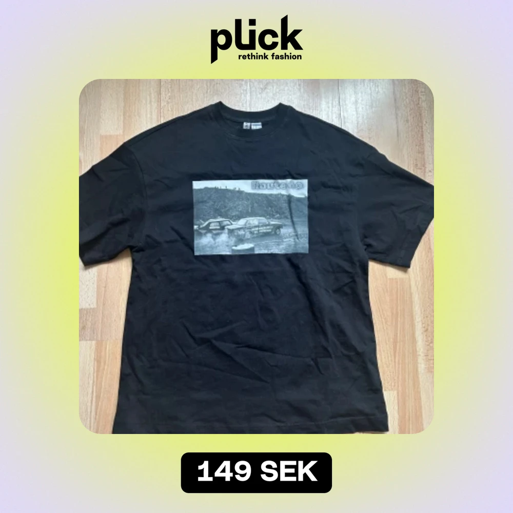 Ett egendesignat tryck på en fräsch secondhandtröja. Ett tryck från vår kollektion ”Noire et Blanche”. Vårt motiv ’Route 66’ är en svartvit bild tagen av vår VDs morfar. Bilden är tagen 1984 på en biltävling i Kållered