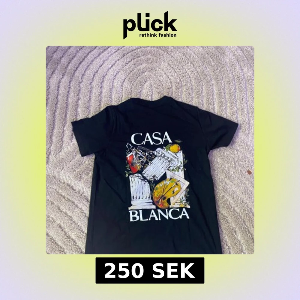 Svart t-shirt från Casa Blanca med stort färgglatt tryck på ryggen och mindre tryck på bröstet. Trycket har motiv av . SAMMA DAG DU KÖPER SAMNA DAG JAG FRAKTAR