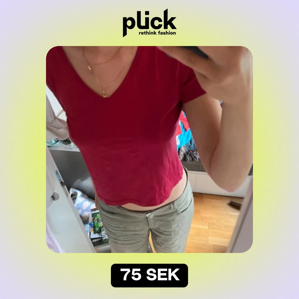 Vinröd t-shirt i storlek L men skulle säga att den är som en M. Använd fåtal gånger