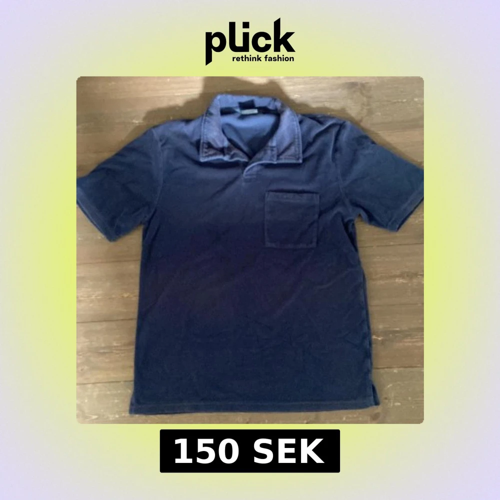 Säljer en stilren mörkblå t-shirt med krage och bröstficka. Perfekt för en avslappnad look. Passar bra till jeans eller shorts.