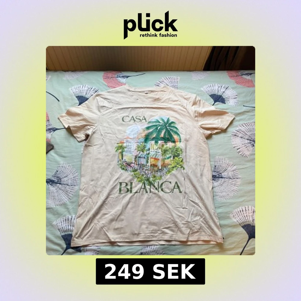 Snygg beige t-shirt från Casa Blanca med stort färgglatt tryck på framsidan som visar palmer och stadsmotiv. T-shirten har rund hals och korta ärmar, perfekt för chill dagar. Materialet känns mjukt och skönt mot huden.
