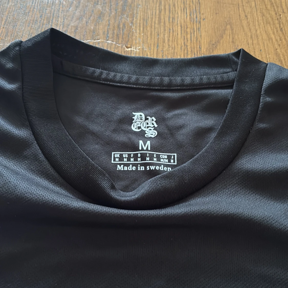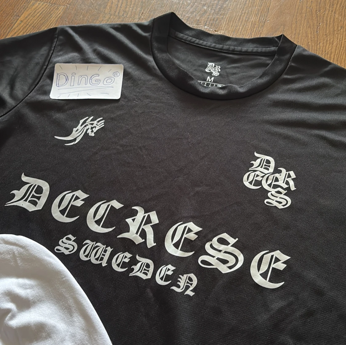 Svart t-shirt från Decrese Sweden med vit gotisk text på bröstet och liten patch nertill. Klassisk rund hals och korta ärmar. Tillverkad i Sverige, känns sportig och lätt med polyesterkänsla. Perfekt för dig som gillar streetwear med edge. 01