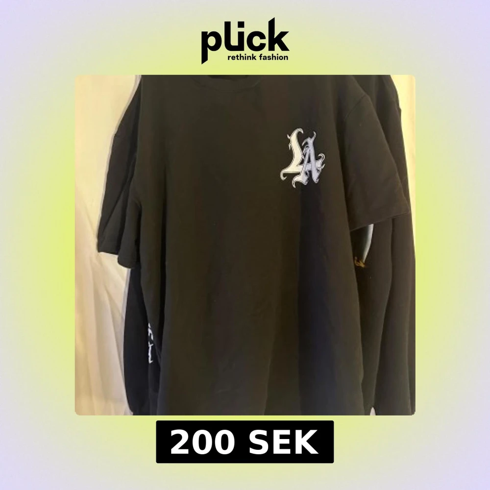 Cool svart t-shirt från SMOG med stort LA-tryck och texten 'Trust No One Only Yourself' på baksidan. Perfekt för en avslappnad stil med en edgy touch.