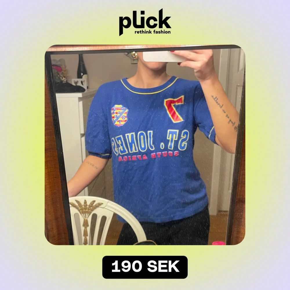 Säljer en blå t-shirt med coolt St. Jones-tryck och nummer 7 på framsidan. Säljer då den tyvärr inte kommer till användning längre 🤍