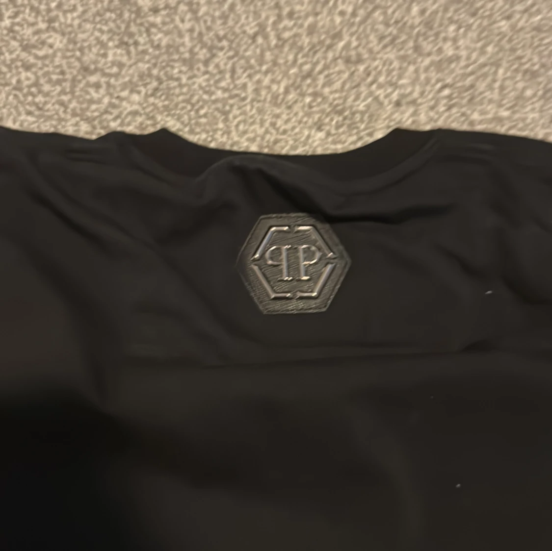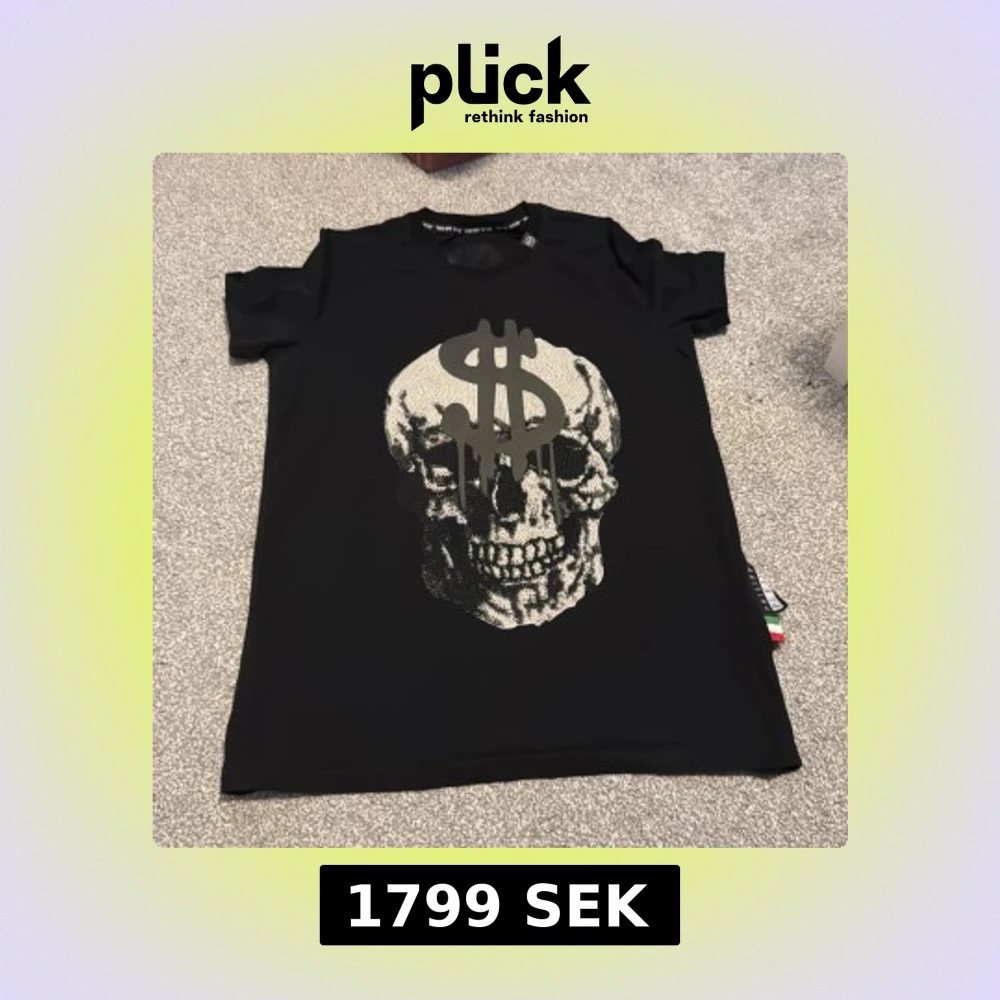 Snygg svart t-shirt från Philipp Plein med ett stort dödskallemotiv och dollartecken på framsidan. T-shirten har en normal passform och är kortärmad, perfekt för en cool och avslappnad stil.