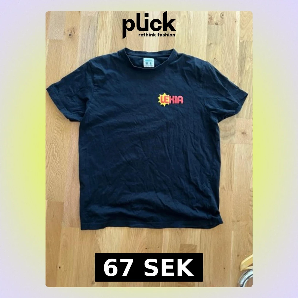 Svart t-shirt från Lekia med tryckt logga i gult och rött på bröstet. Klassisk rak passform och rund halsringning. Tillverkad i mjuk bomull, perfekt för en avslappnad och enkel stil. L men sitter som M