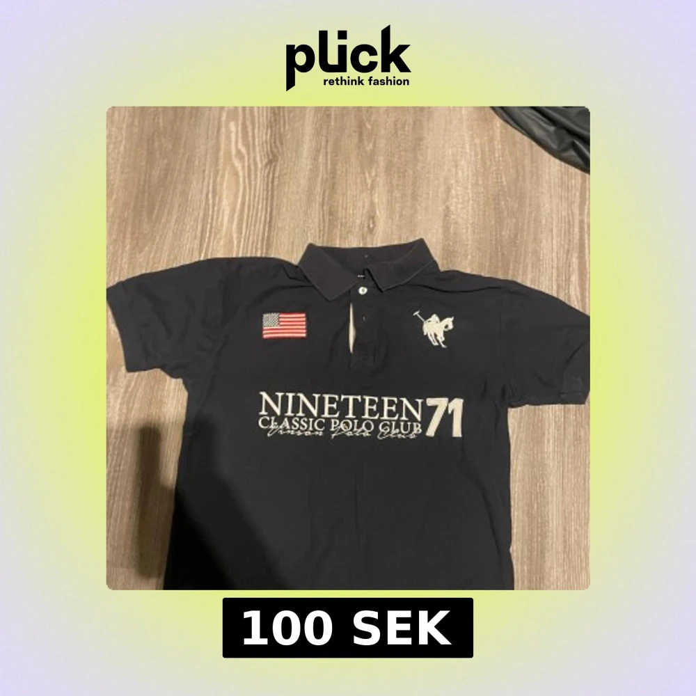 Yalla ja måste snusa Svart polo t-shirt från Classic Polo Club med broderad amerikansk flagga och stor logga framtill. Klassisk krage med knappar och tryck i vitt och grått. Perfekt för dig som gillar sportig och stilren look.