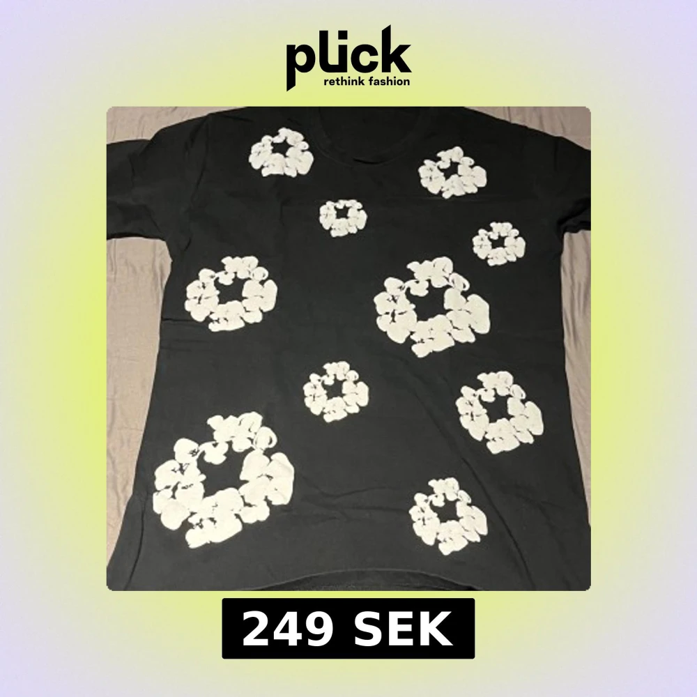 Cool svart t-shirt med vita blommor i olika storlekar tryckta över hela framsidan och baksidan. Rund hals och korta ärmar. Mjuk och skön känsla, perfekt för dig som gillar unika prints och vill sticka ut lite extra.