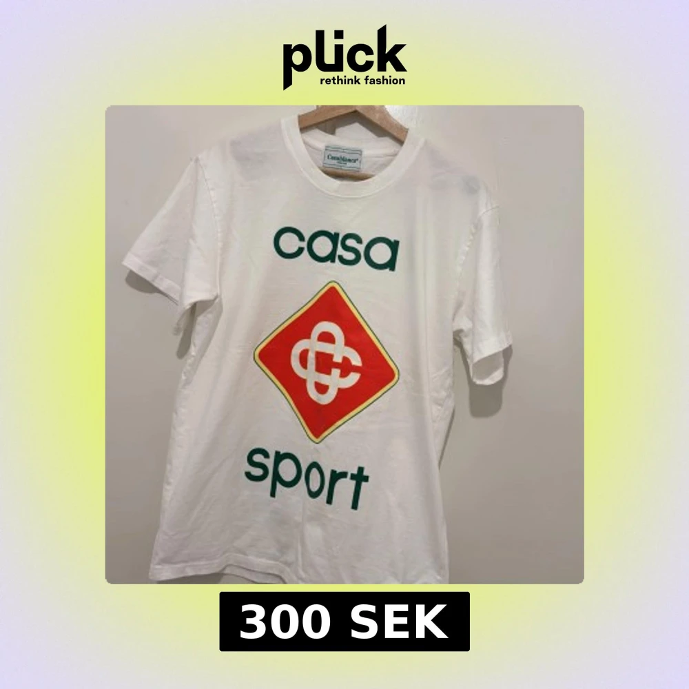 Vit t-shirt från Casablanca med tryck 'casa sport' och en stor röd och gul grafisk logga på bröstet. Klassisk passform med korta ärmar och rund hals. Tillverkad i 100% bomull, perfekt för en sportig och clean look.