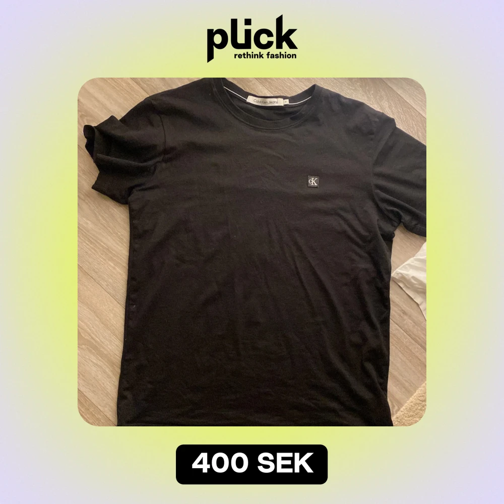 Säljer en stilren svart t-shirt från Calvin Klein Jeans i storlek M. Den har en liten CK-logga på bröstet och är gjord i mjukt bomullsmaterial. Perfekt för vardagsbruk eller en avslappnad kväll ute. Passar till allt!