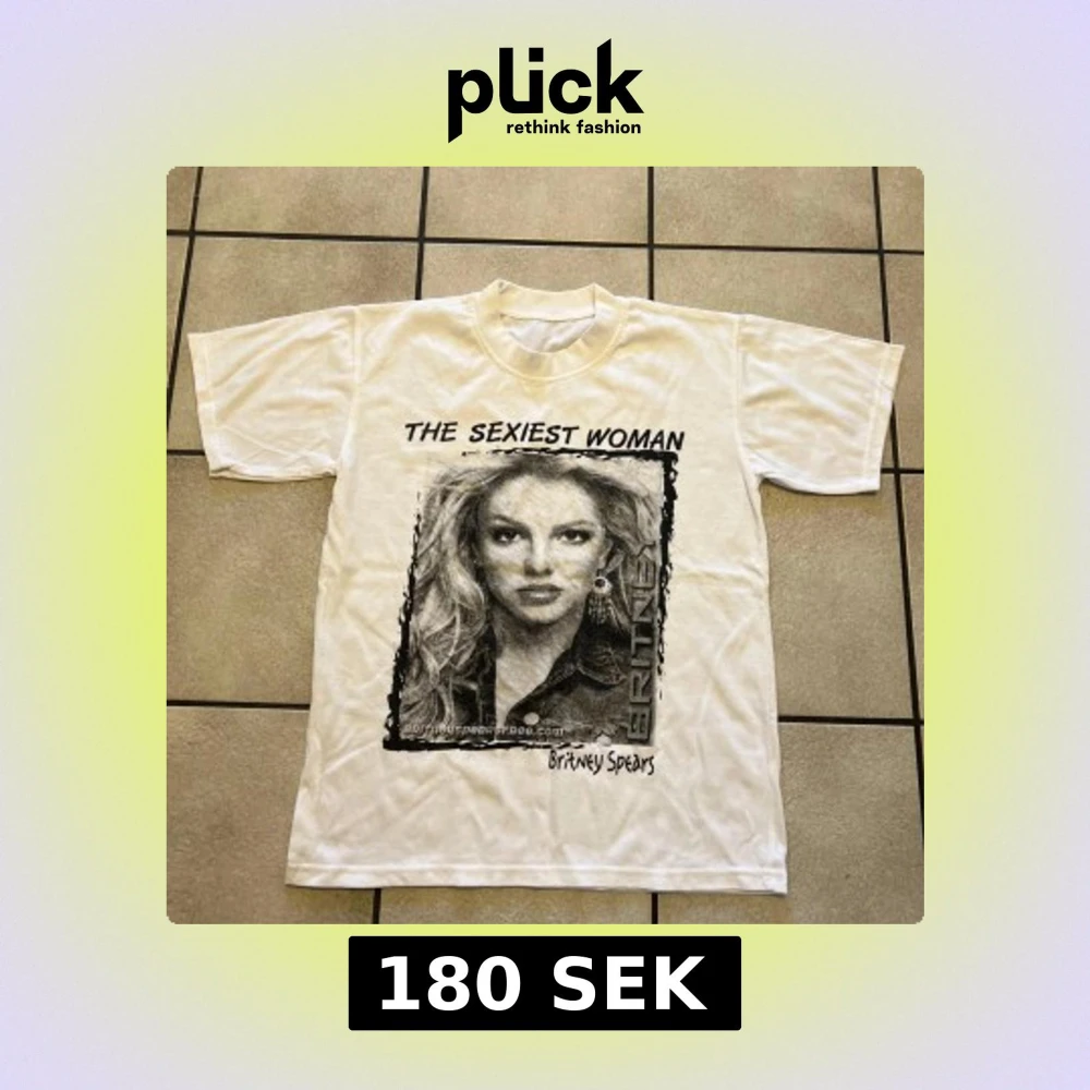 Cool vit t-shirt med ett stort tryck av en känd artist och texten 'The Sexiest Woman'. Perfekt för fans som vill ha en unik stil. Längd 61 cm, bröstomkrets 98 cm