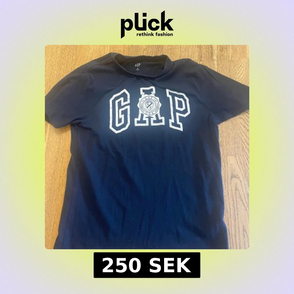 Snygg mörkblå t-shirt från GAP med stort vitt tryck och logga på bröstet. Klassisk passform och rund halsringning. Perfekt för en avslappnad och sportig stil. Tillverkad i mjuk bomull som känns skön mot huden.