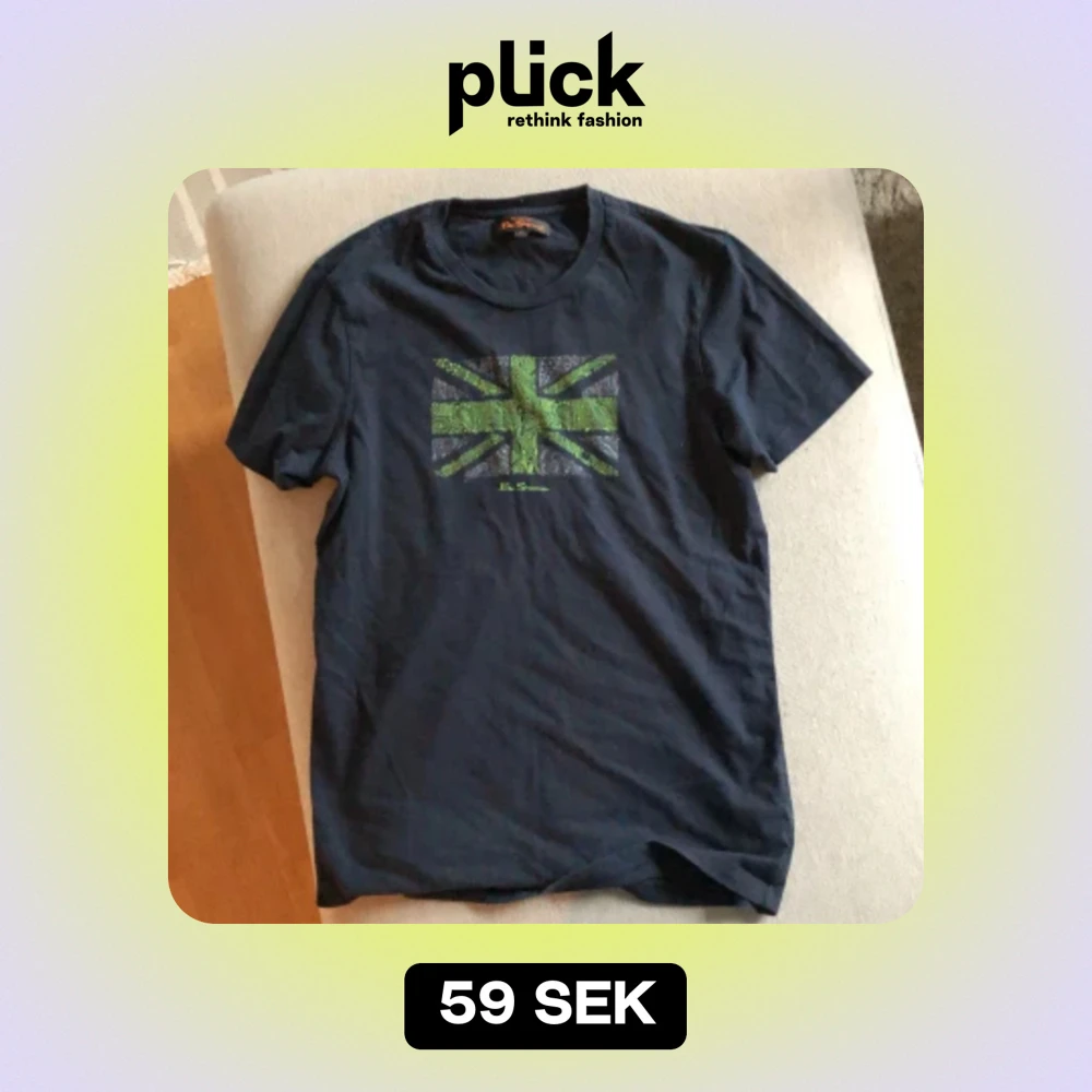 En mörkblå t-shirt från Ben Sherman med ett grönt och grått mönster av Union Jack-flaggan på framsidan. T-shirten har korta ärmar och en normal passform. Tröjan har aldrig använts och är i nyskick. Säljs billigt då jag vill bli av med det!