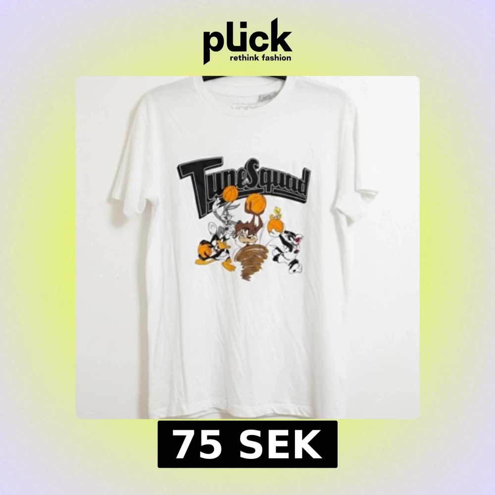 Vit t-shirt från Space Jam med stort Tune Squad-tryck framtill och Looney Tunes-karaktärer som Bugs Bunny, Daffy Duck, Taz, Tweety och Sylvester. Klassisk passform, rund hals och korta ärmar. Jätte gullig