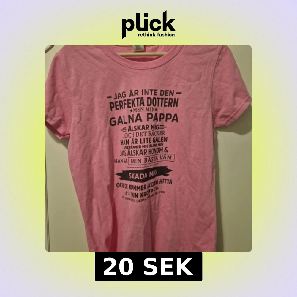 Rosa t-shirt från Gildan i bomull med svart texttryck på framsidan. Klassisk rund hals och korta ärmar. Skön och enkel modell som passar perfekt till jeans eller shorts. Trycket har ett humoristiskt budskap om pappa och dotter.