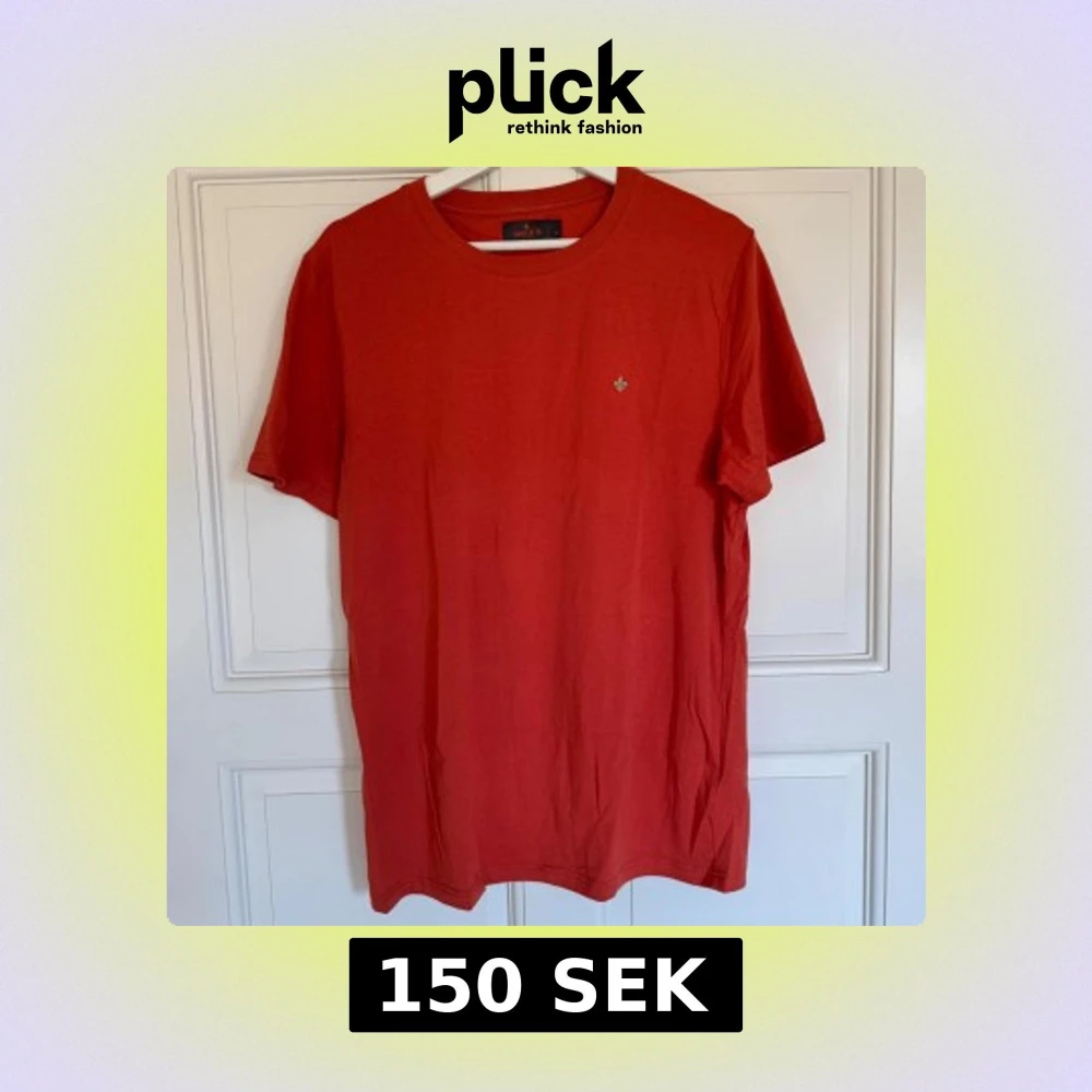 Snygg orange (ser mer röd ut på bilderna) t-shirt från Morris Stockholm med liten broderad logga på bröstet. Säljer då den inte passar längre, använd väldigt få gånger.