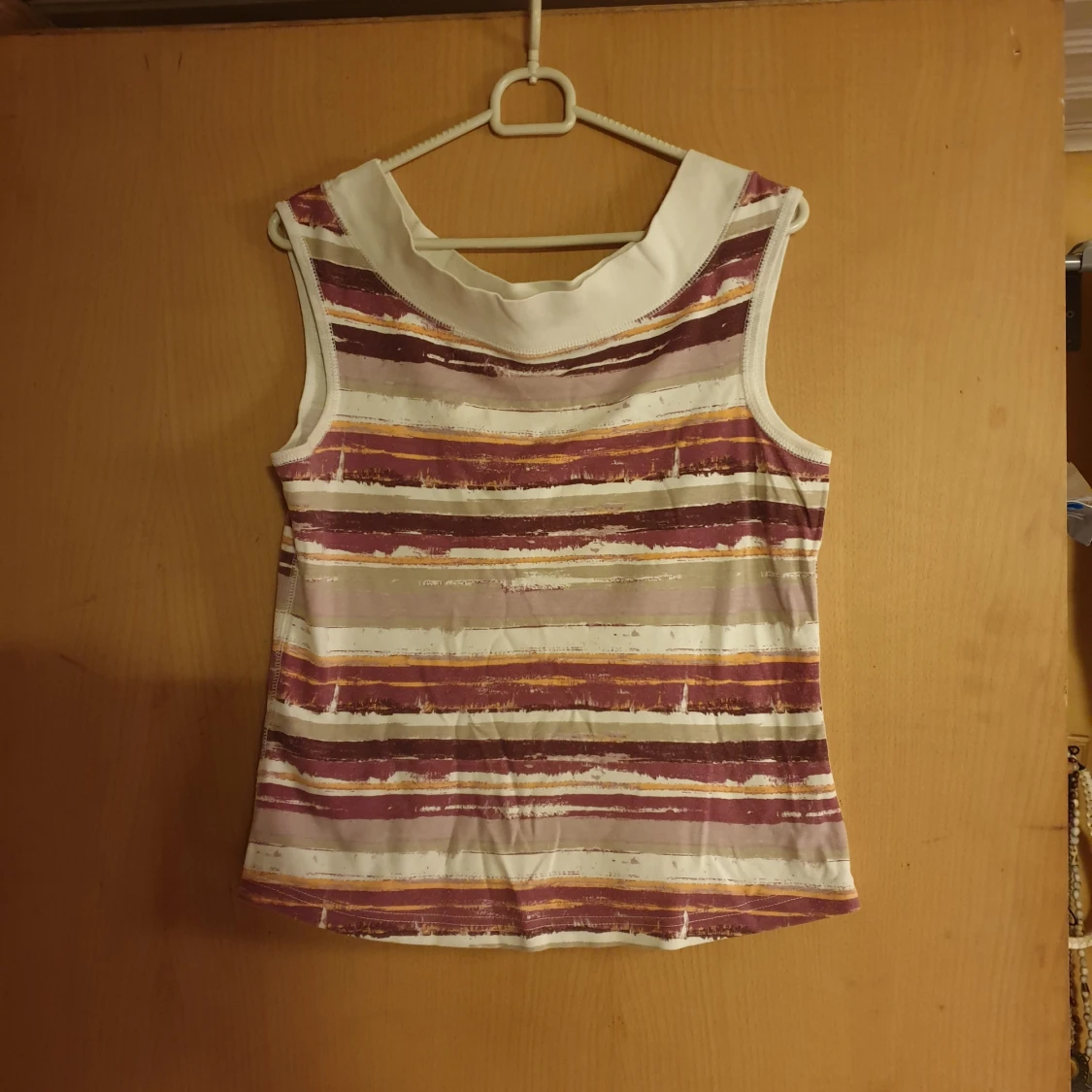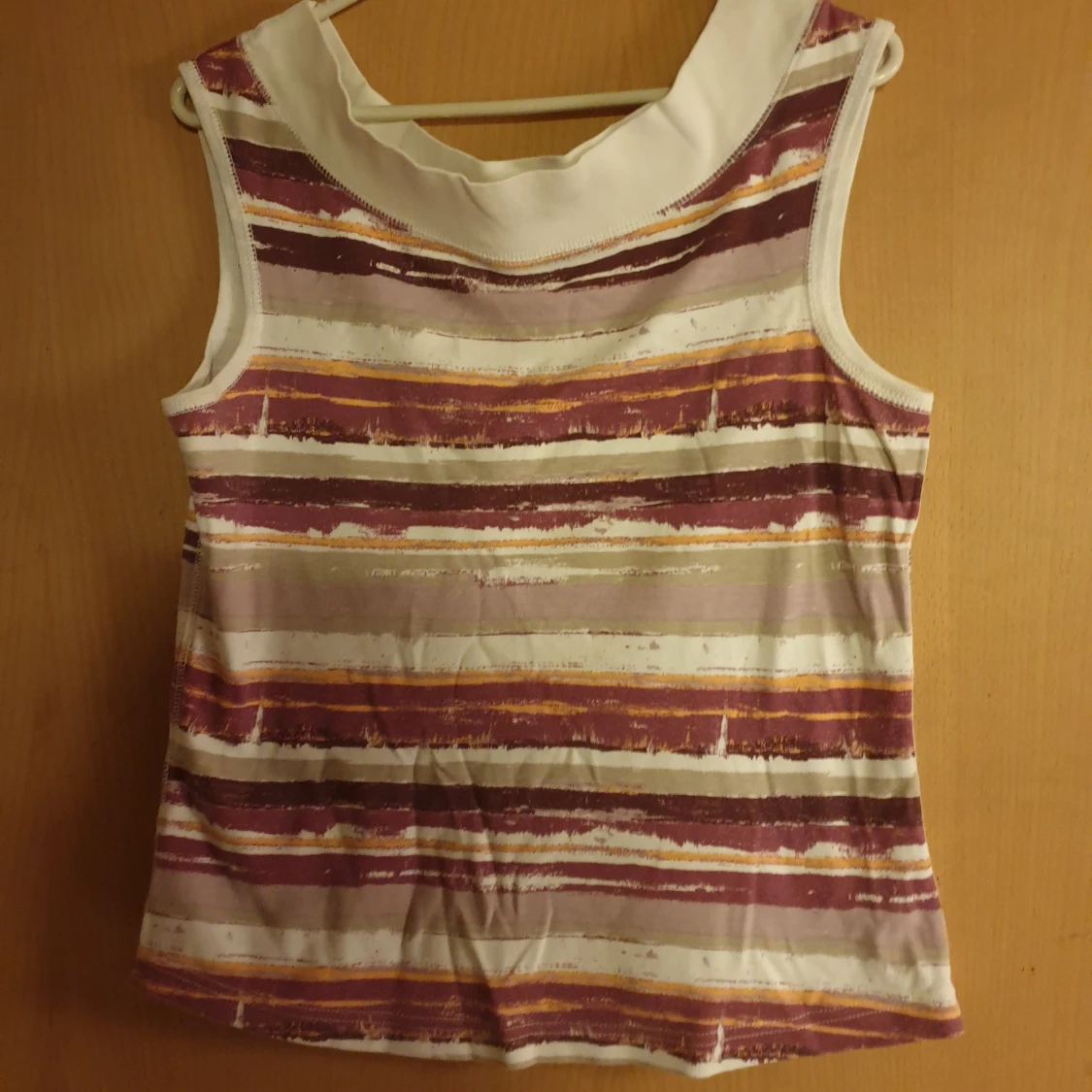 Färgglad T-shirt med vacker vid hals.lila rosa mönster