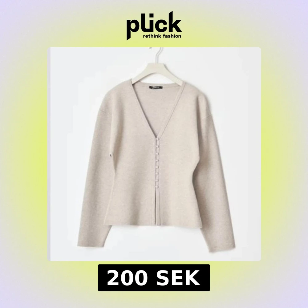 Snygg beige kofta med v-ringning och knappar framtill. Perfekt för lager-på-lager och passar till många olika outfits.