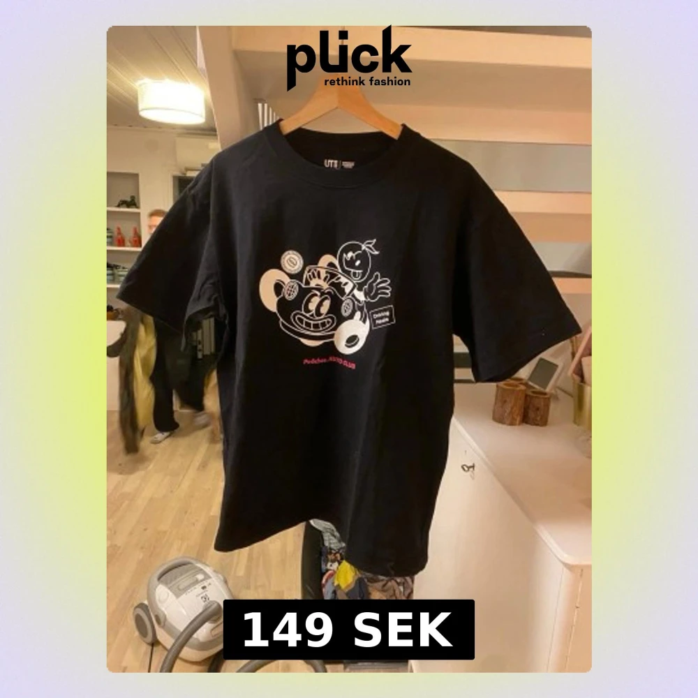 Cool svart t-shirt från UTI med ett stort grafiskt tryck på framsidan i vitt och rött. Trycket har en lekfull design med figurer och text. T-shirten har rund hals och korta ärmar, perfekt för dig som gillar streetstyle och unika prints.
