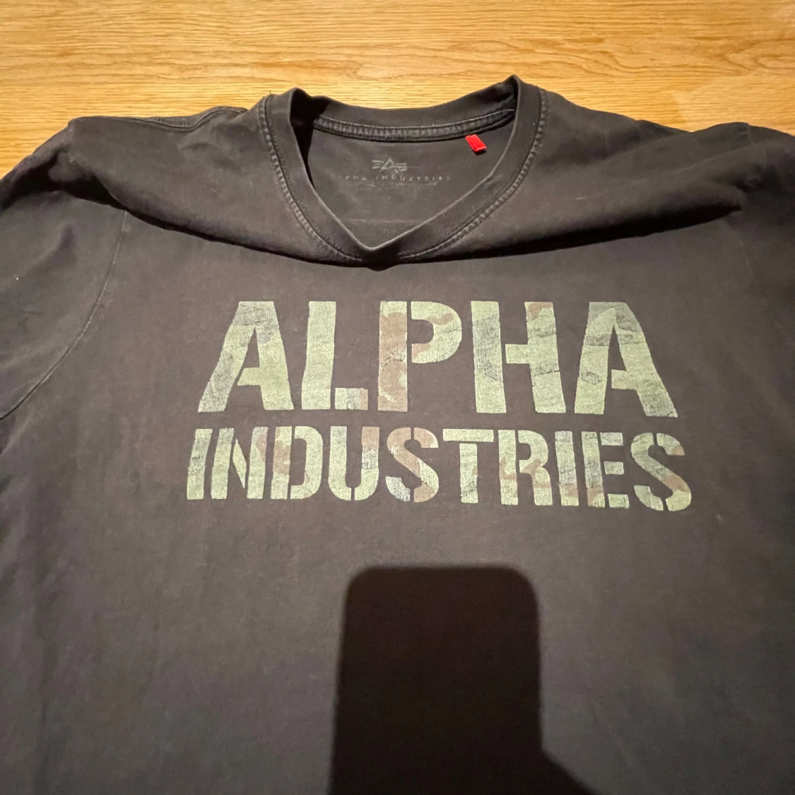 Snygg svart t-shirt från Alpha Industries med stort tryck på bröstet. Perfekt för en casual look. T-shirten har en rund halsringning och korta ärmar.