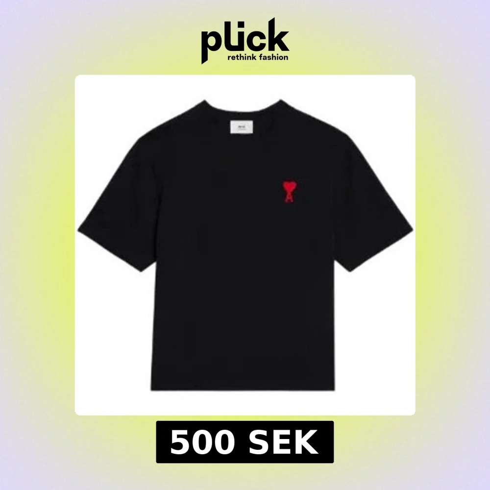 Snygg svart t-shirt från Ami Alexandre Mattiussi med ett rött broderat hjärta på bröstet. Perfekt för en stilren look. Kortärmad och tillverkad i mjukt material för extra komfort.