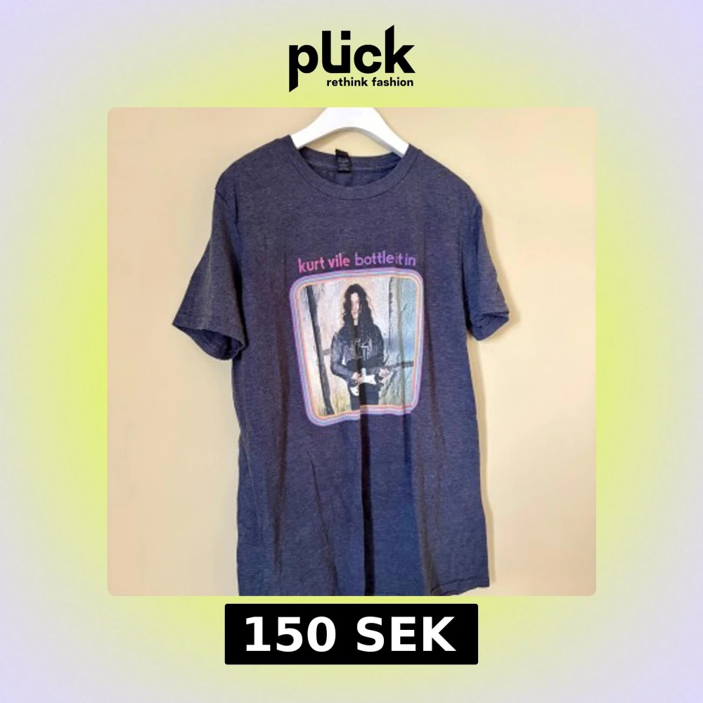 Snygg mörkgrå t-shirt från med tryck av Kurt Vile och texten 'bottle it in' på bröstet. T-shirten har rund hals, korta ärmar och är gjord i mjuk bomull.