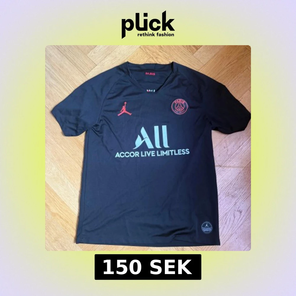 Snygg svart PSG fotbollströja från samarbetet med Jordan. Tröjan har korta ärmar, röd PSG-logga och Jumpman på bröstet samt Accor Live Limitless-tryck i vitt. Tillverkad i lätt och ventilerande material, perfekt för träning eller match.