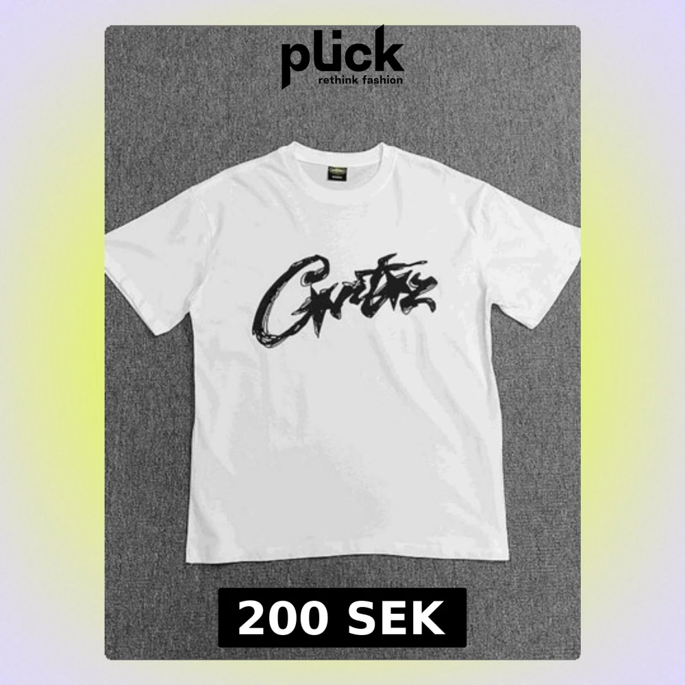 Snygg vit t-shirt från Crusty med ett stort svart graffiti-inspirerat tryck på bröstet. Klassisk rund hals och korta ärmar. Perfekt för dig som gillar streetwear och vill sticka ut med en unik design.