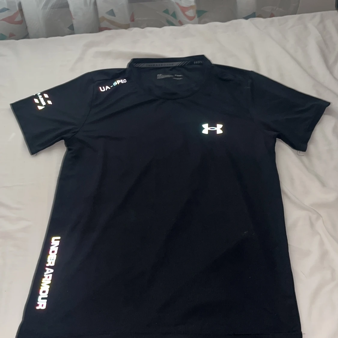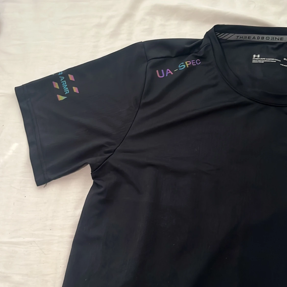 Svart Under Armour t-shirt i funktionsmaterial med korta ärmar och reflekterande logga på bröstet. Snygga detaljer med UA-SPEC-tryck på axeln och Under Armour-tryck längs sidan. Perfekt för dig som gillar sportig och clean stil.