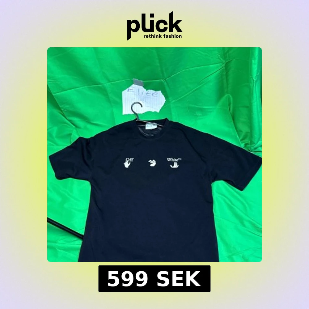 Svart t-shirt från Off-White med ikoniskt vitt tryck framtill och stort grafiskt tryck på ryggen. Klassisk passform med rund hals och korta ärmar. Materialet känns mjukt och skönt, perfekt för en streetwear-look.Liknande modell som originalet!