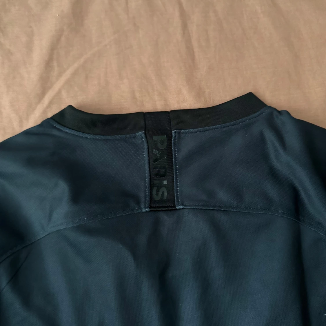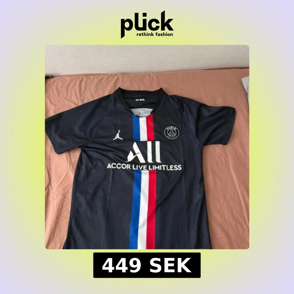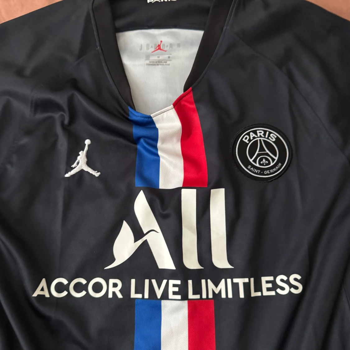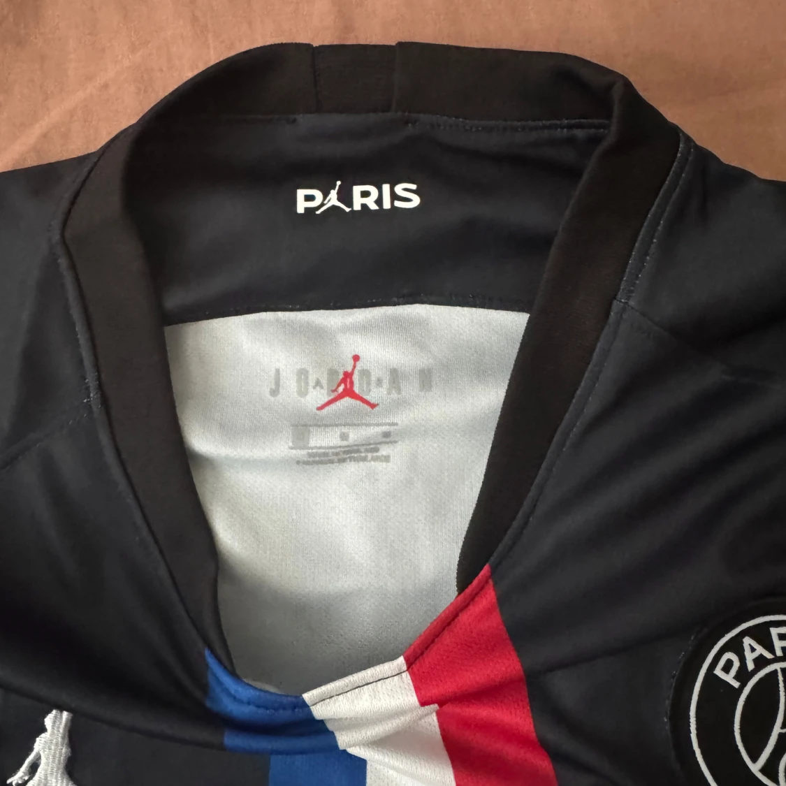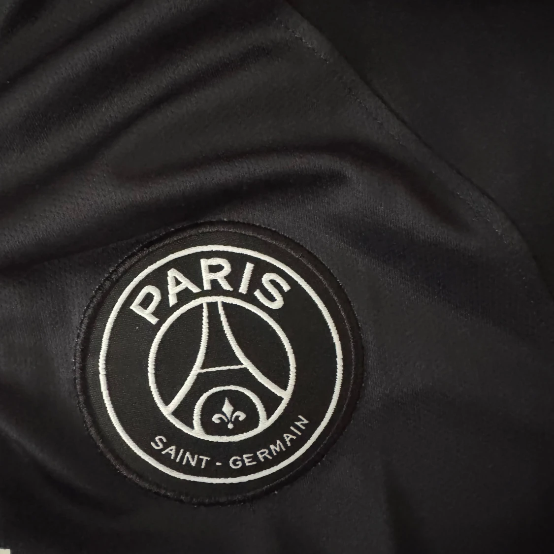 Svart PSG fotbollströja från Jordan med vit, blå och röd rand längs mitten. Snyggt Paris Saint-Germain-emblem på bröstet och Jordan-logga. Tillverkad i lätt och ventilerande polyester, perfekt för match eller träning. Modern passform och korta ärmar.