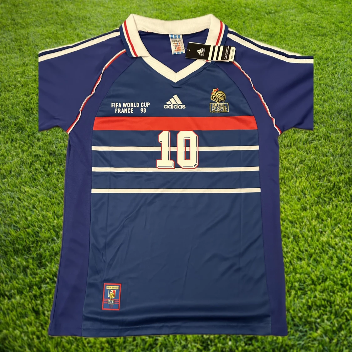 Nyskick/helt oanvänd Zinedine Zidane Frankrike tröja från VM 1998. Detta mästerskap vann Zidane VM med just Frankrike vilket gör denna tröja extra ikonisk. Tveka inte att höra av er för fler frågor och bilder!