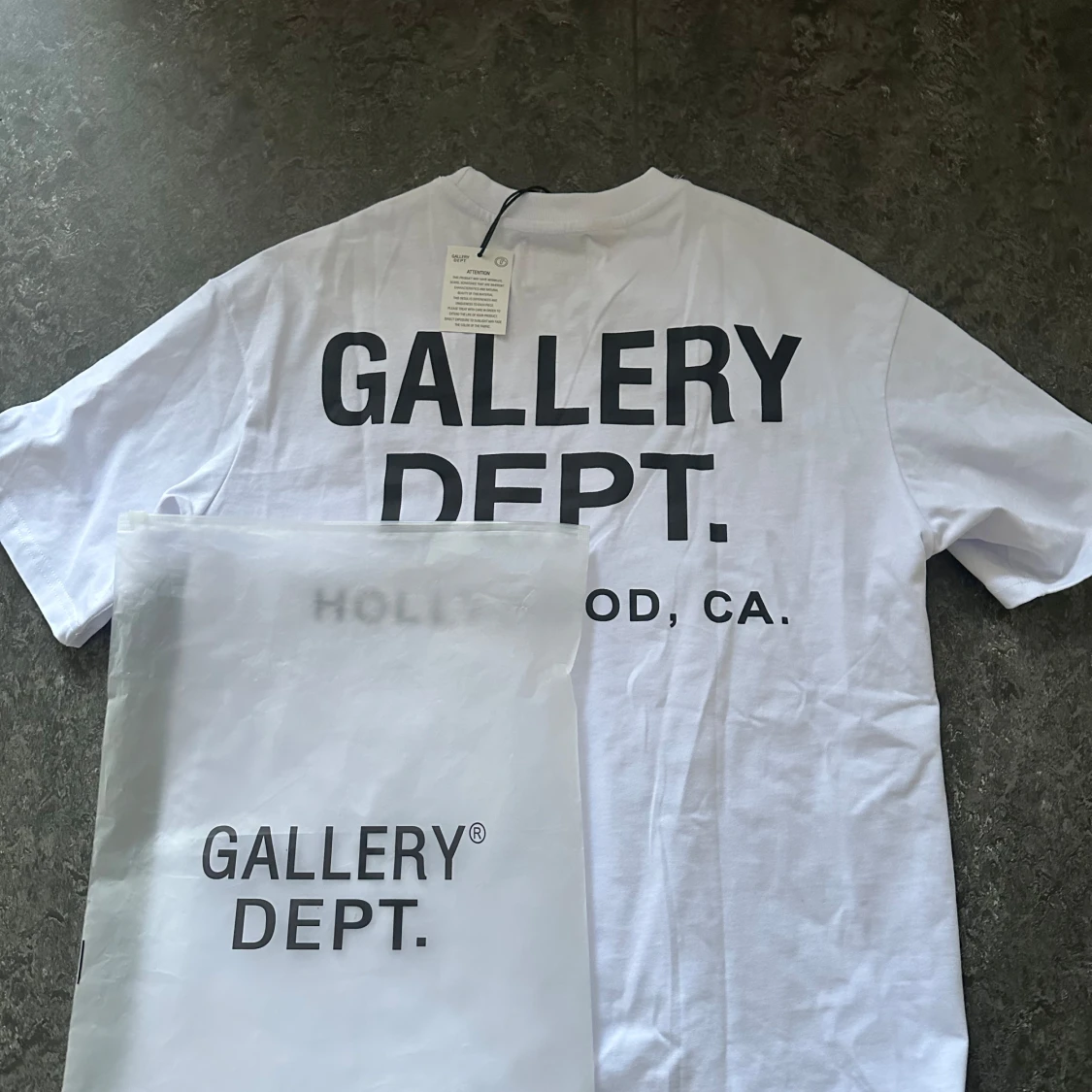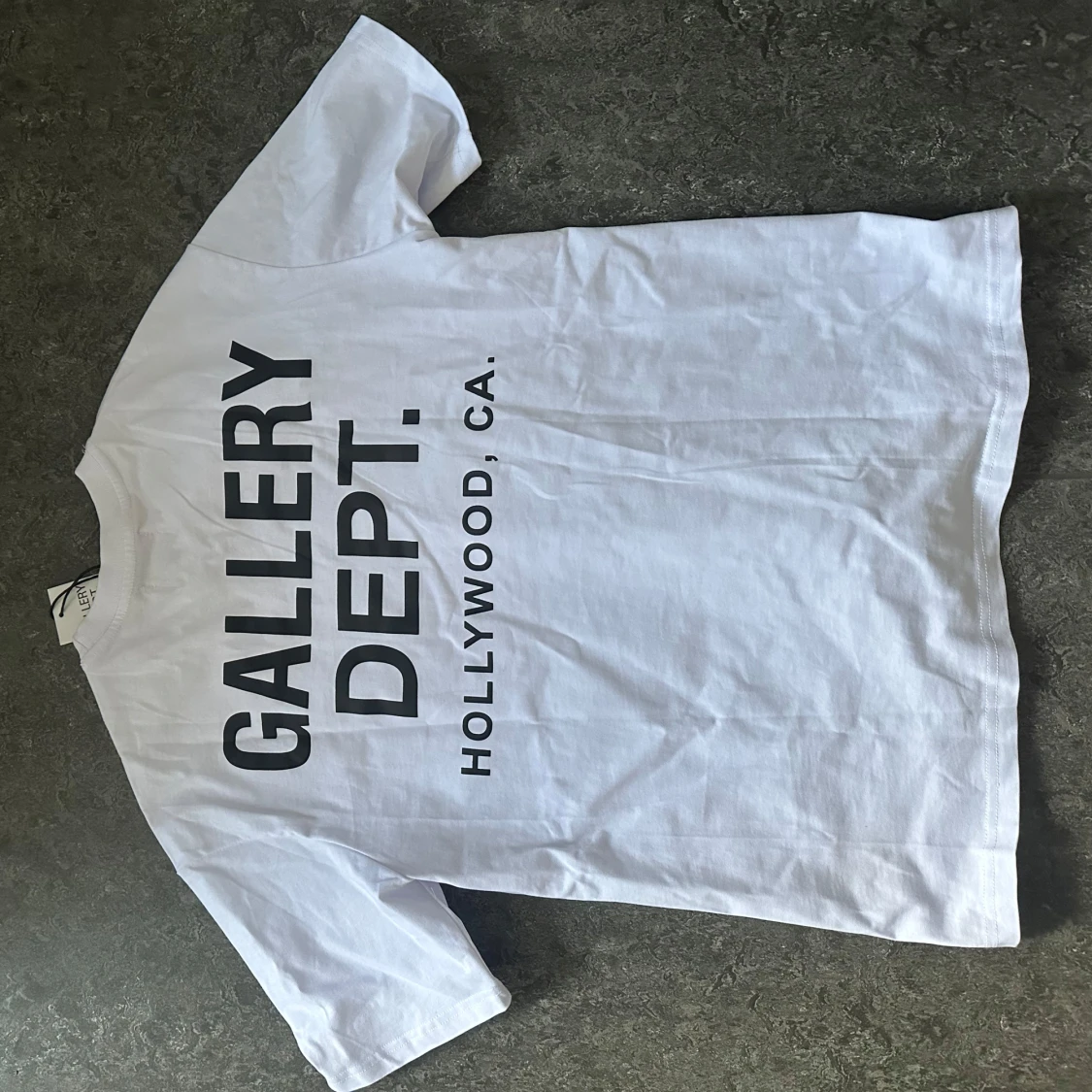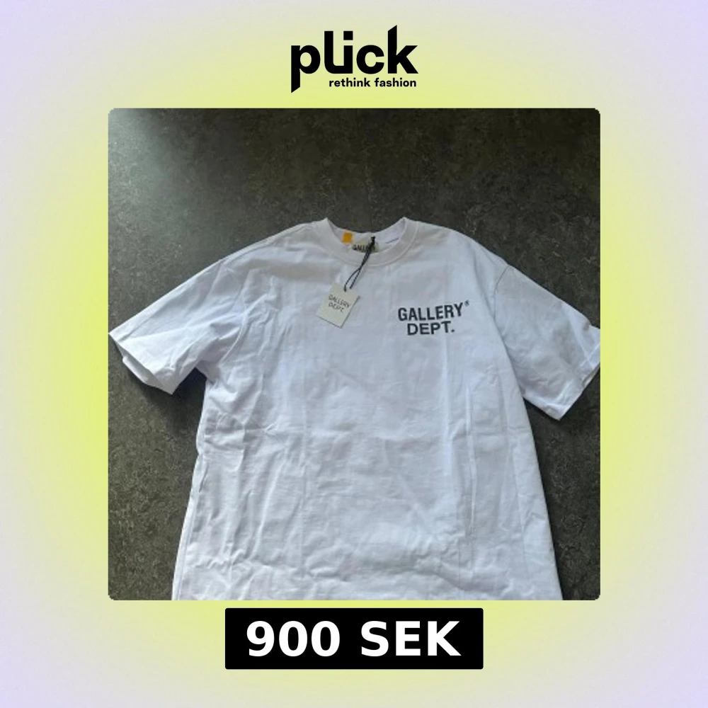 Säljer en stilren vit t-shirt från Gallery Dept. Aldrig använd men säljer den för att den är lite för stor på mig, står att det är S men passar hundra procent M. Tryck på båda sidorna med taggen kvar. Priset kan diskuteras!