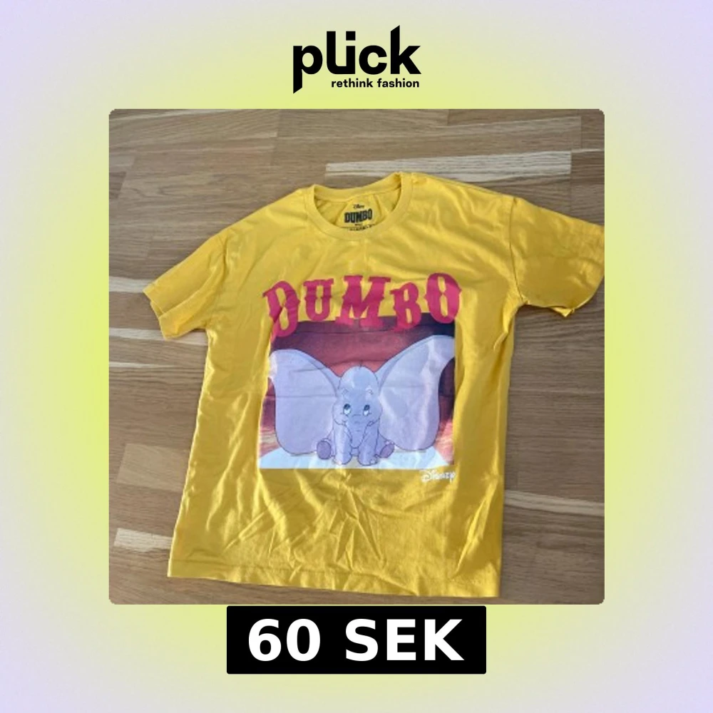 Säljer en t-shirt med ett stort tryck av Dumbo från Disney. T-shirten har korta ärmar och en rund halsringning. Perfekt för alla Disney-fans! 🐘✨
