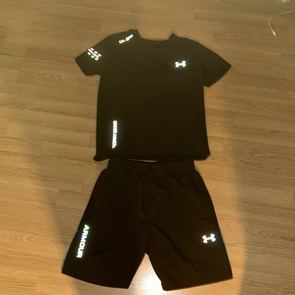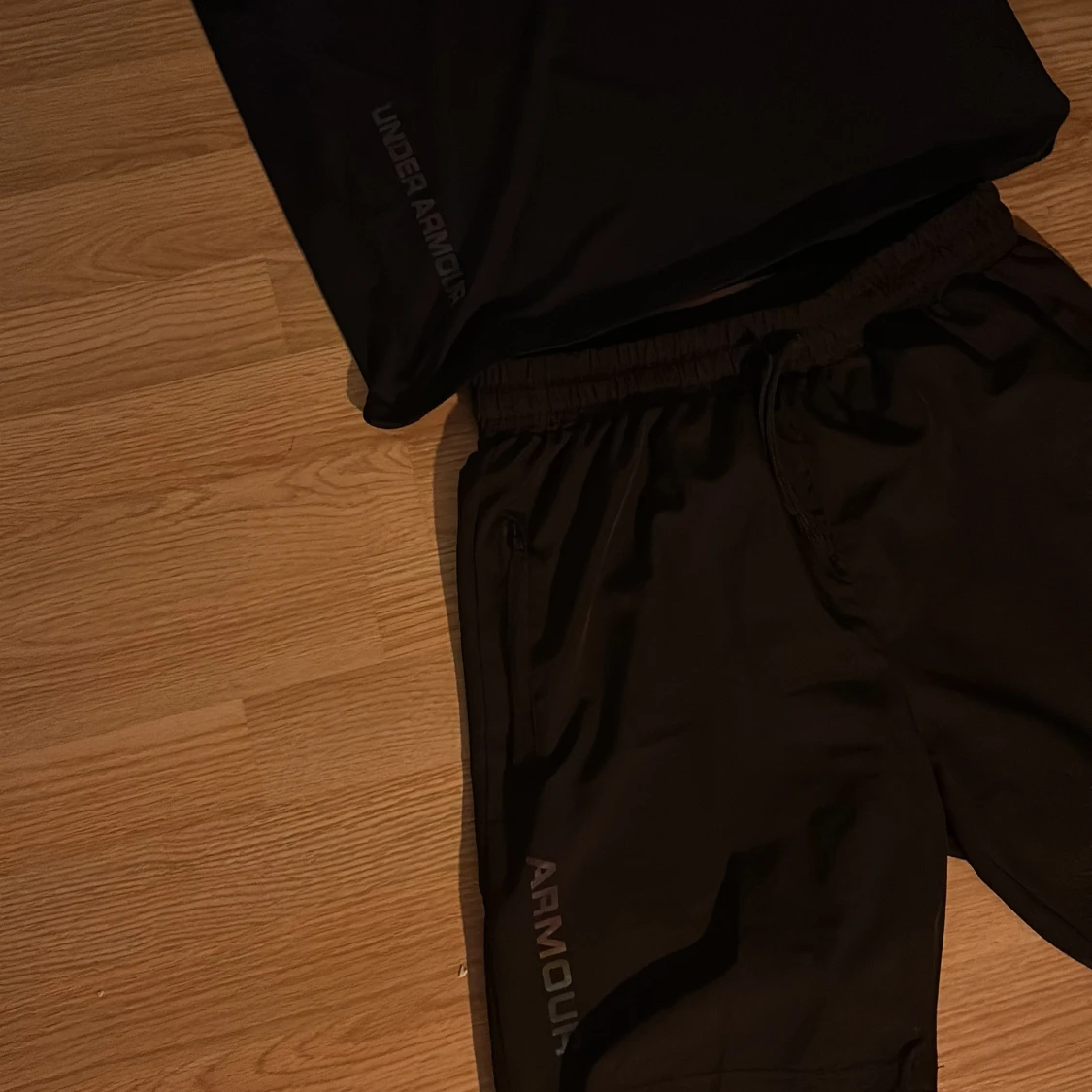 Finns även i navy blue och grå. Svart set från Under Armour med elastisk midja och reflekterande logga. Lätta och luftiga i syntetmaterial, perfekta för intensiva träningspass. Snyggt tryck med ARMOUR längs benet ger sportig vibe.