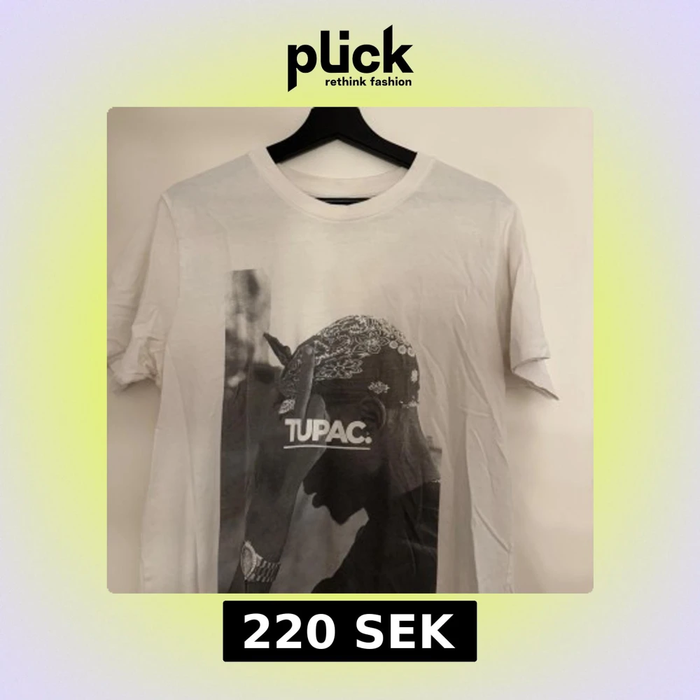 Vit t-shirt med stort svartvitt tryck av Tupac på framsidan. Klassisk rund hals och korta ärmar. Skön passform och tillverkad i mjuk bomull. Perfekt för dig som gillar streetstyle och vill ha en ikonisk look.