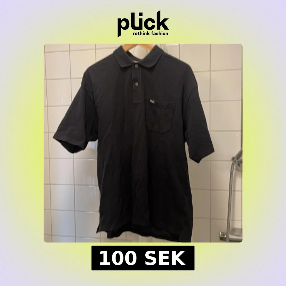 Snygg svart pikétröja från Yoke med krage och knappar. Tröjan har en bröstficka med en liten Yoke-logga. Perfekt för en stilren look.