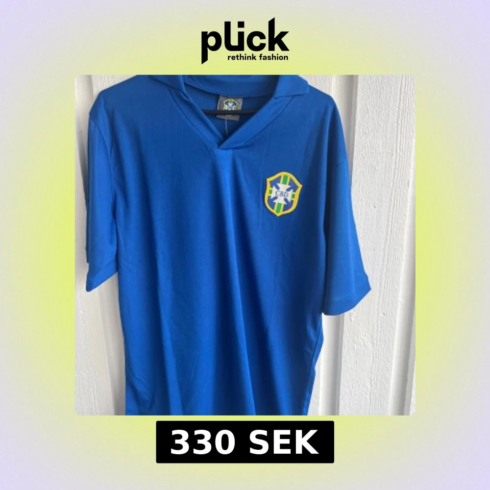 Snygg blå fotbollströja med Brasilien CBD-emblem på bröstet och klassisk krage. På ryggen står det 'Pelé' och nummer 10 i vitt. Tillverkad i mjukt, lätt syntetmaterial som andas. Perfekt för dig som vill hylla en legend på planen eller på läktaren.