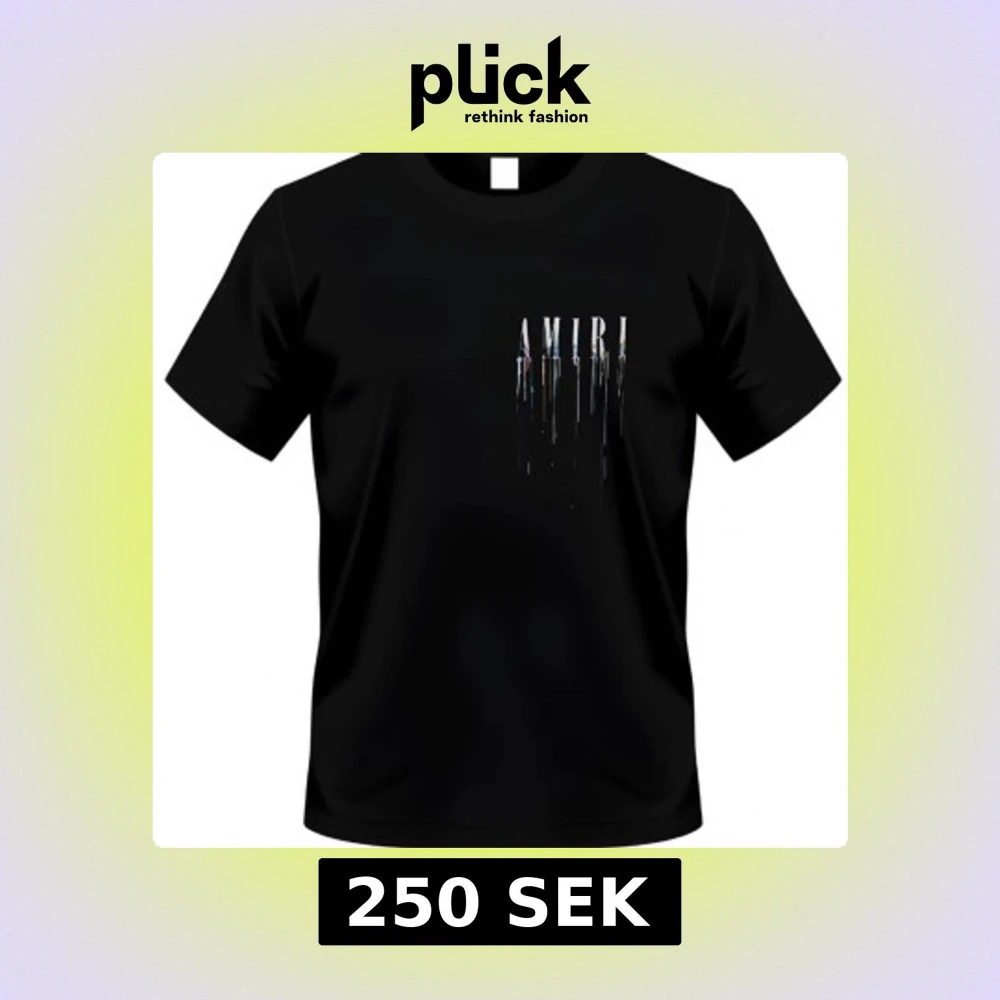 Svart t-shirt från AMIRI med coolt tryck framtill och stort vitt ängelmotiv på ryggen. Framsidan har droppande AMIRI-logga, medan baksidan har en detaljerad ängel och logotyp. Klassisk passform och rund hals. Perfekt statement-plagg för dig som gillar streetstyle.