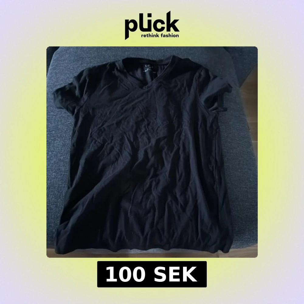 En svart t-shirt från Primark i slim fit-modell med v-ringad hals. T-shirten är kortärmad och tillverkad i mjukt material som känns skönt mot huden. Perfekt för en clean och enkel look.